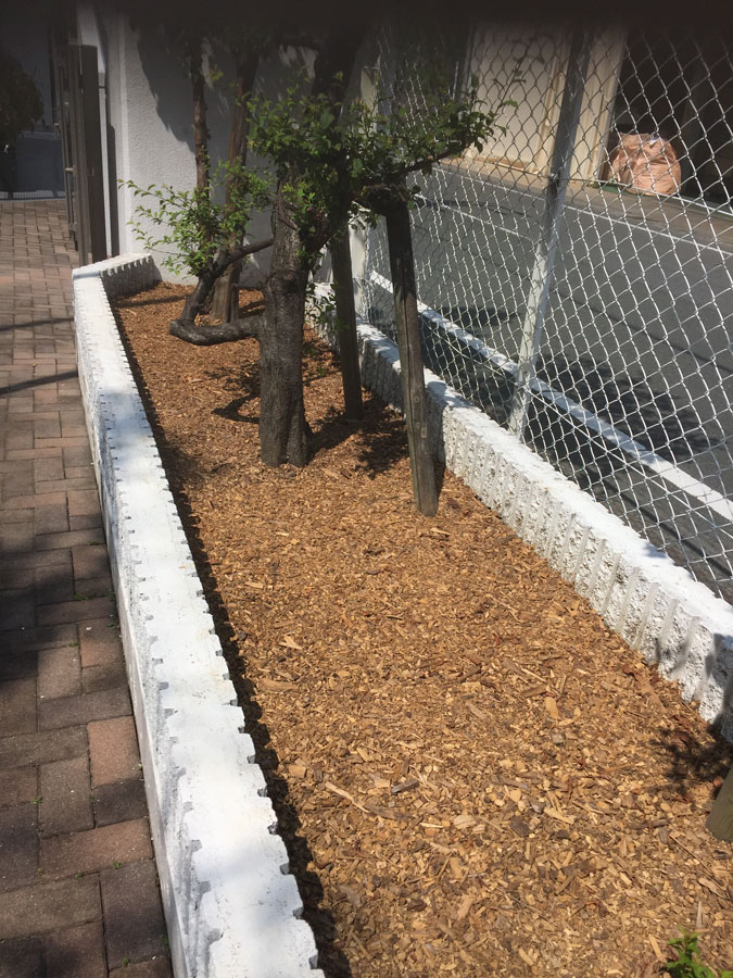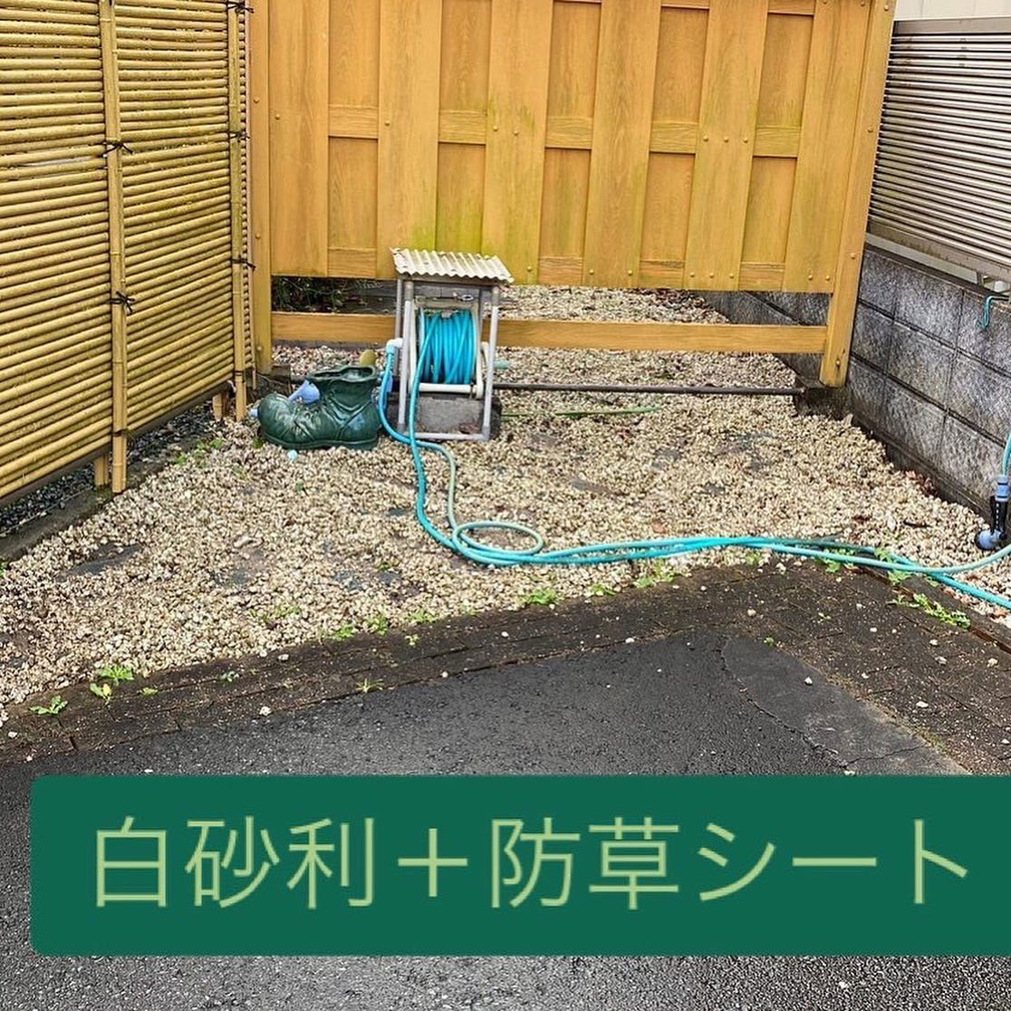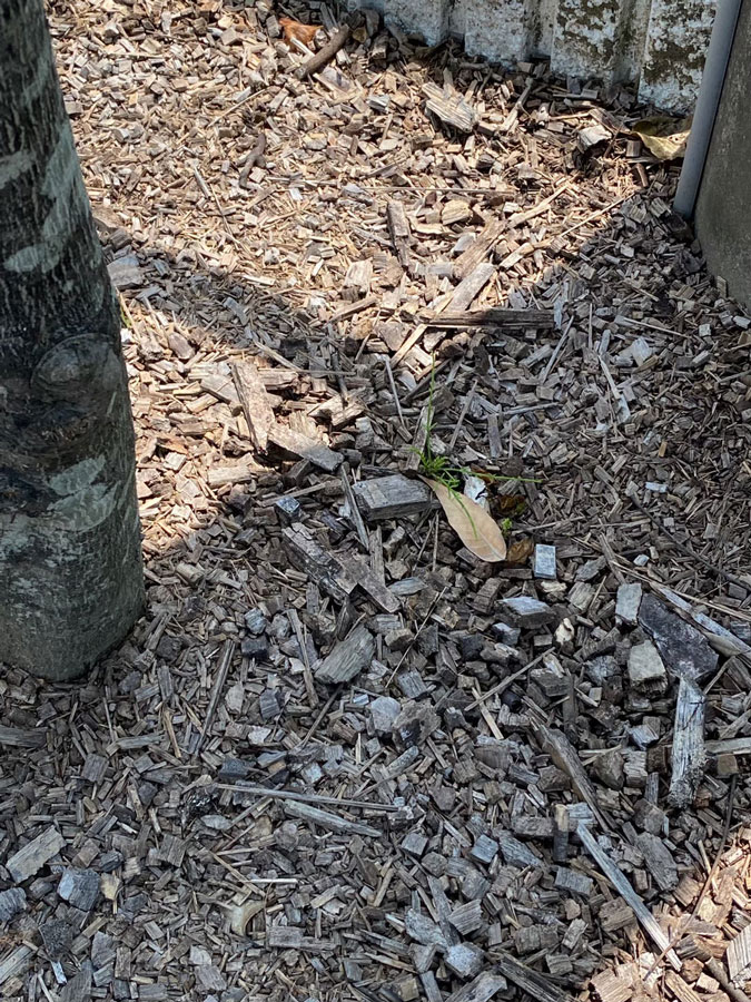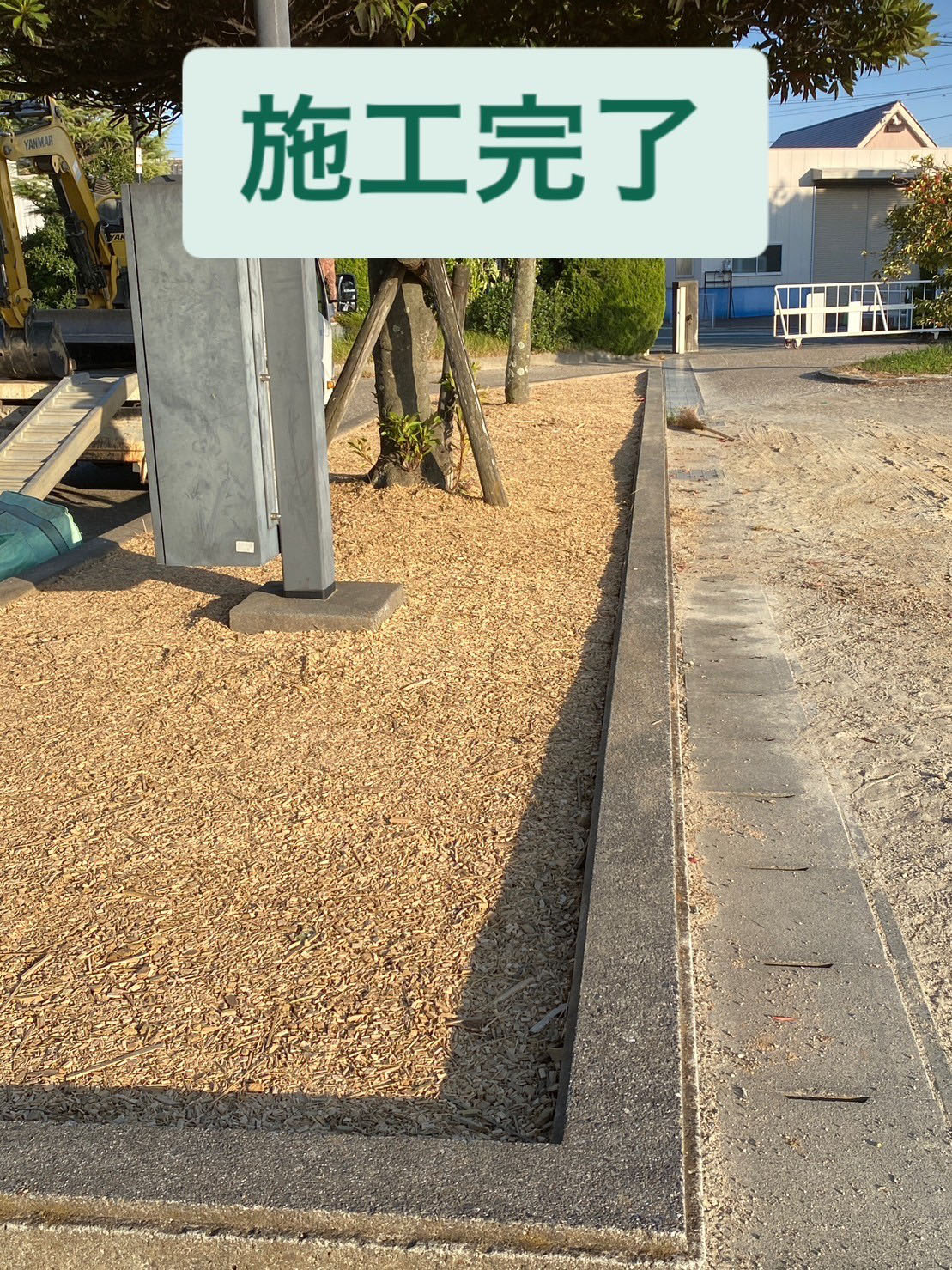 こちらは、雑草対策で今まで防草シート+白砂利 をやってましたが、防草シートから雑草が生えてしまい今回 竹チップに!