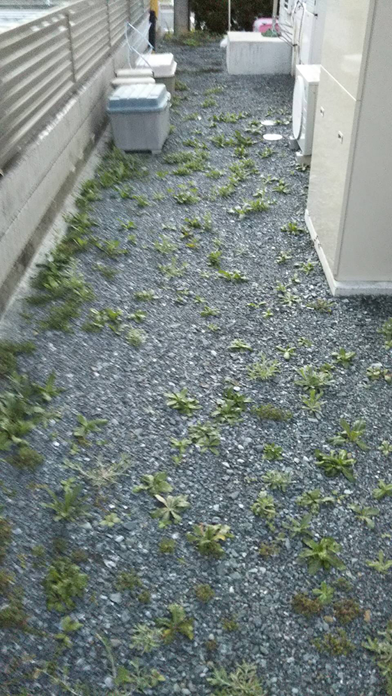 我社は製造業ではありますが、工場敷地内には多くの樹木を植えています。 その為、雑草除去作業は春先から秋口にかけてはほぼ毎日やらなくてはいけませんでした。 ホームセンターで除草シートなどを購入して試しましたが、数ヶ月で劣化して破れかえって醜くなって しまいました。