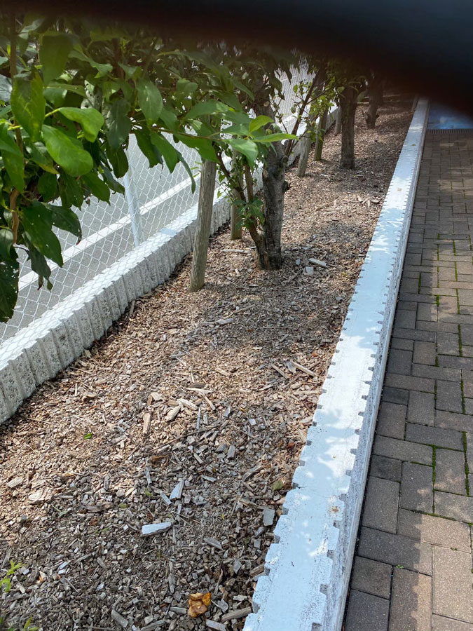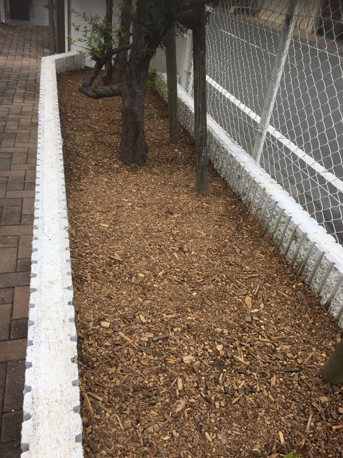*雨の流れる場所だとチップが流れる可能性がある為、土留め等が必要です