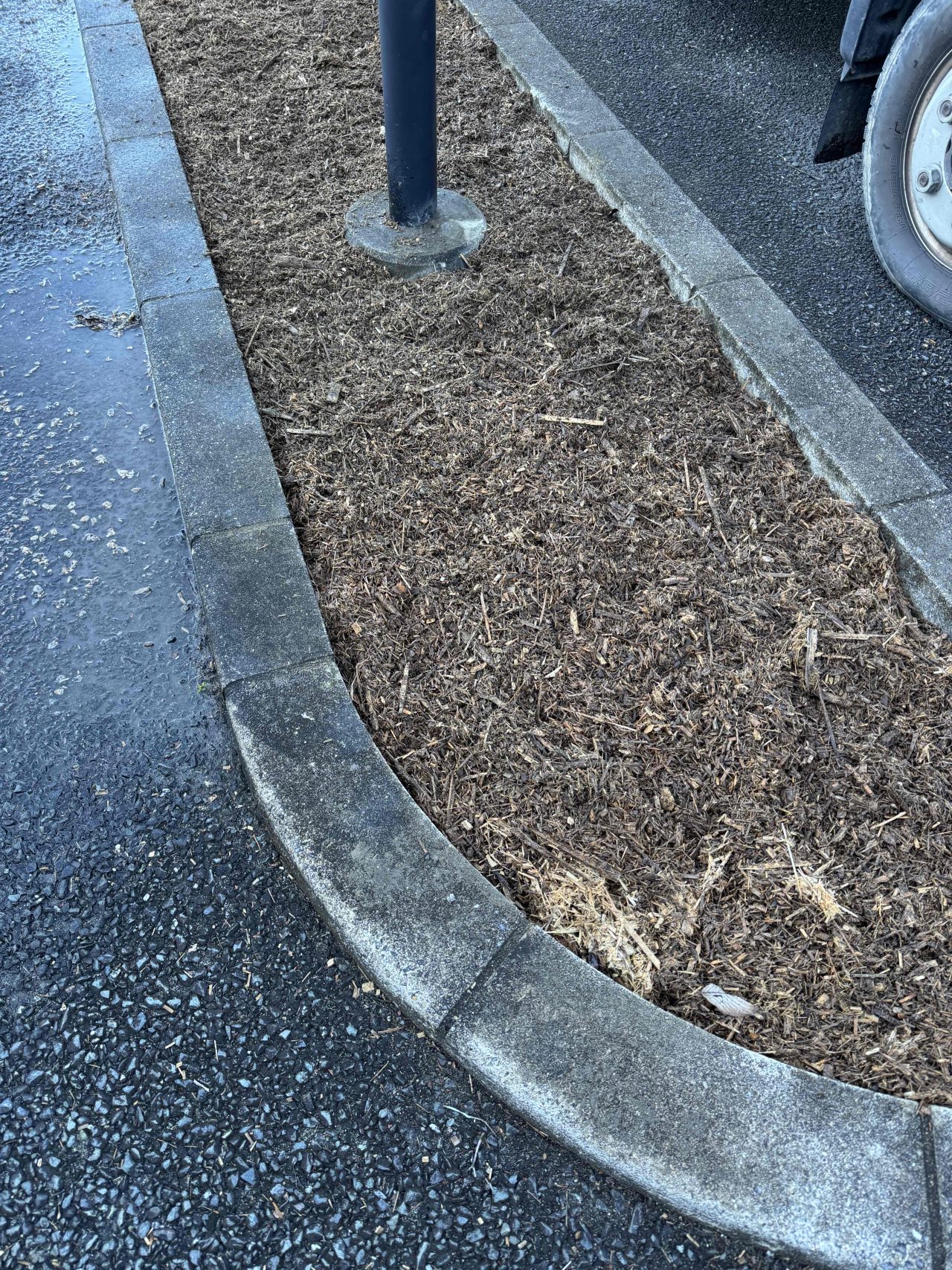 年末 最終の竹チップ施工 12月26日 1年半前に、一部を竹チップで、やって頂きましたお客様から追加のご注文を9月に頂き!工事がずっと詰まっており、やっと年末の最後に施工できました!!